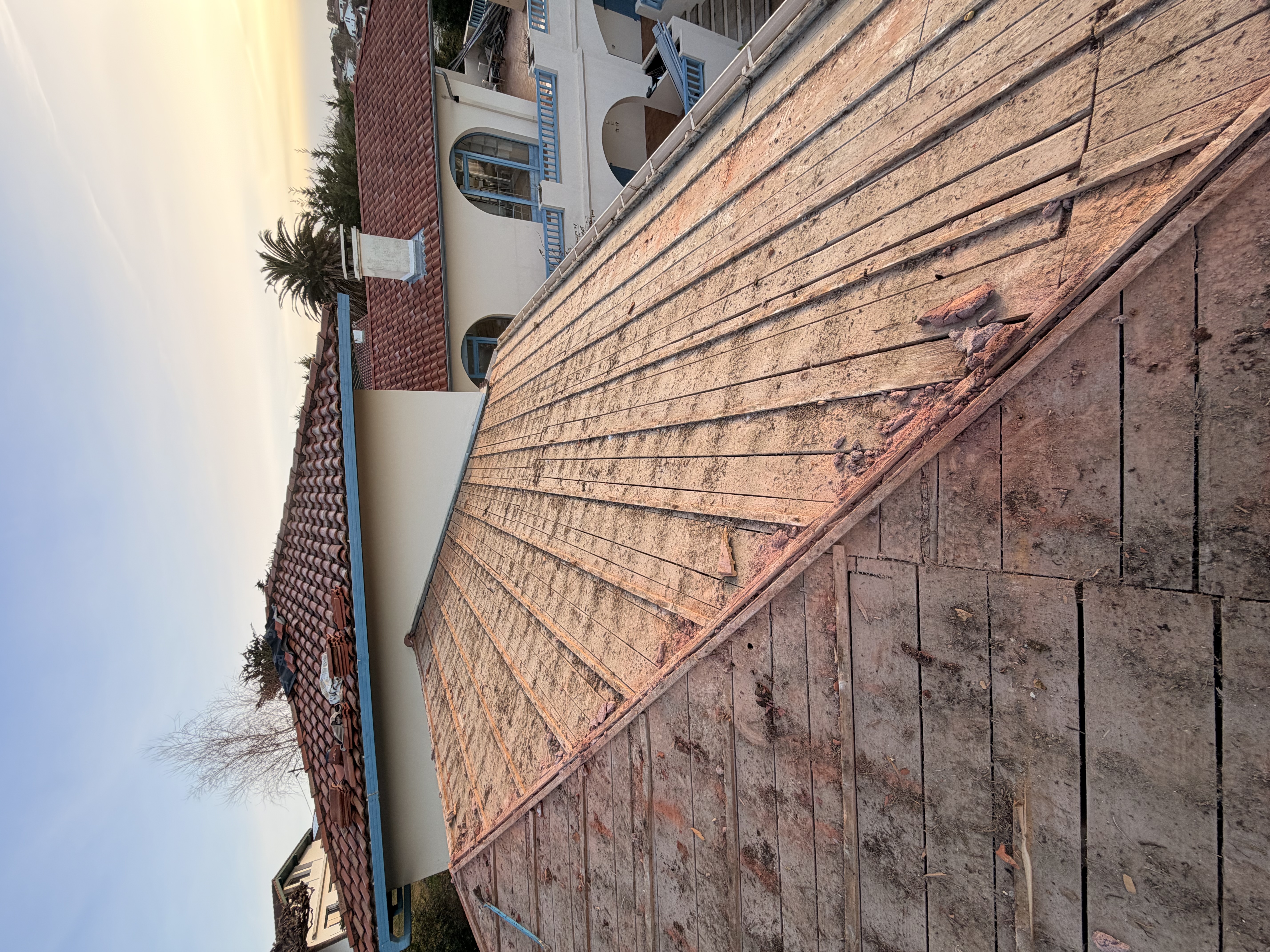 Dans le cadre d’un chantier de rénovation de toiture à Soustons (Landes 40), nous avons réalisé une réfection partielle et structurelle de la couverture. Les travaux ont débuté par la dépose de l’ancienne toiture en tuiles, suivie d’une intervention sur la charpente avec le renforcement des chevrons en partie basse et le remplacement de certains éléments porteurs.